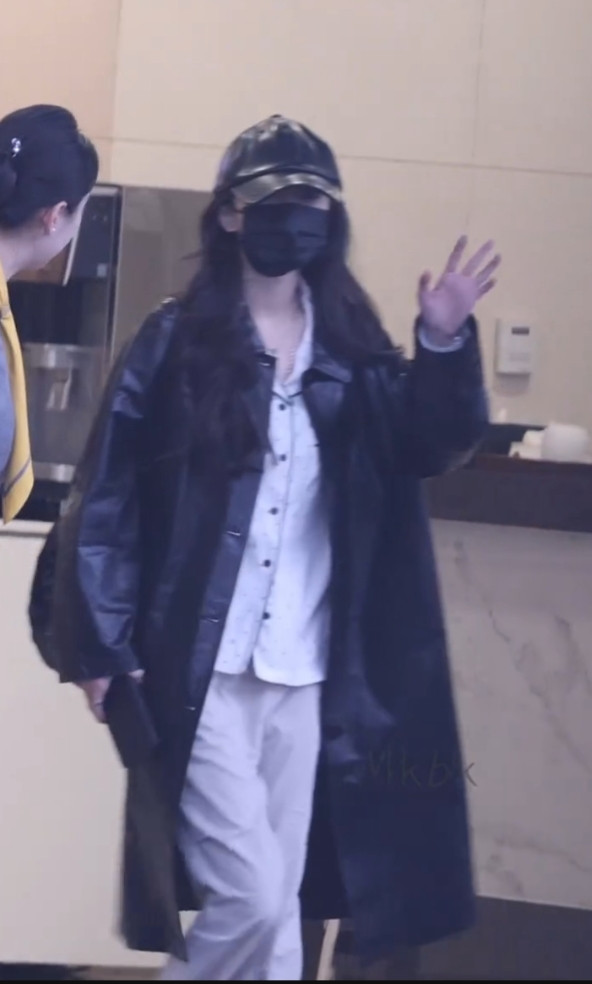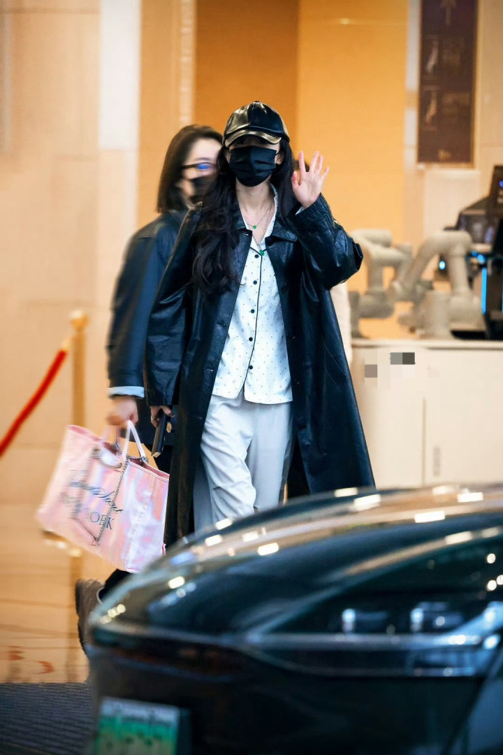 正版炒股软件 杨幂结束维密秀回国, 内穿浅色睡衣外穿黑色大衣就出来了, 够松弛
