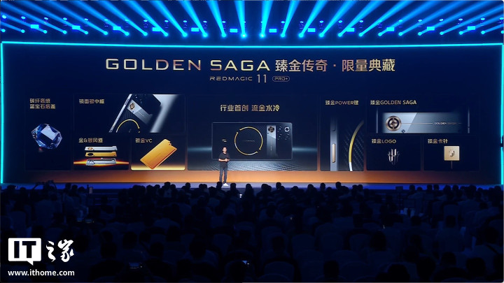 本次红魔11Pro+还将推“GoldenSaga”特别版,为硬核游戏玩家打造,外部配备超跑同款碳纤维材质,拥有莫氏9级硬度蓝宝石、镜面银中框,首发液金水冷散热,具备臻金电源键等元素,还拥有专属典藏礼盒,电竞平板、游戏本也将拥有同款版本。