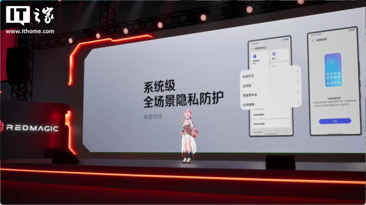 此外,红魔姬MORA也在发布会上亮相换装全新国风造型,根据她的介绍,REDMAGICOS11系统将具备“极密空间”,支持AI圈搜、AI影像识物等功能,还增强了系统的直播投屏功能,可有线/无线双投屏,可在8K60Hz/4K144Hz模式间自由切换。