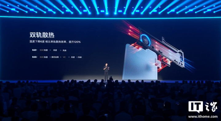 同时这款手机还拥有“双轨散热”,可将SOC产生的热量“兵分两路”,分别直接散热至风道/风扇、液金/VC/风道/风扇,相比单轨散热效率提升120%,温度下降6度,整套系统名为“ICE魔冷散热系统”,号称“最强散热风向标”。