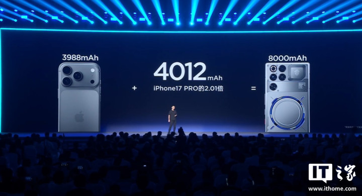 电池方面,这款手机拥有8000mAh牛魔王电池3.0,开启旗舰手机“8”字头时代,提供120W魔闪快充,同时支持旁路充电,可实现直驱充电+充电分离特性,还是红魔系列首款支持80W无线充电的手机,电池容量号称相当于苹果iPhone17Pro的2.01倍。